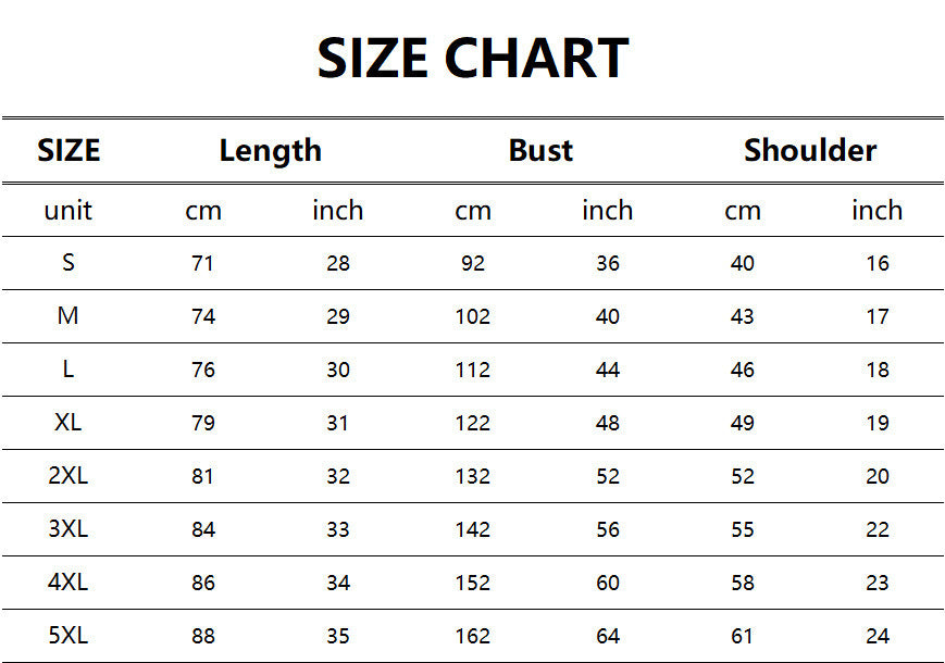 - Size: S, M, L, XL, 2XL, 3XL, 4XL, 5XL