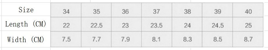 - Size: 34, 35, 36, 37, 38, 39, 40